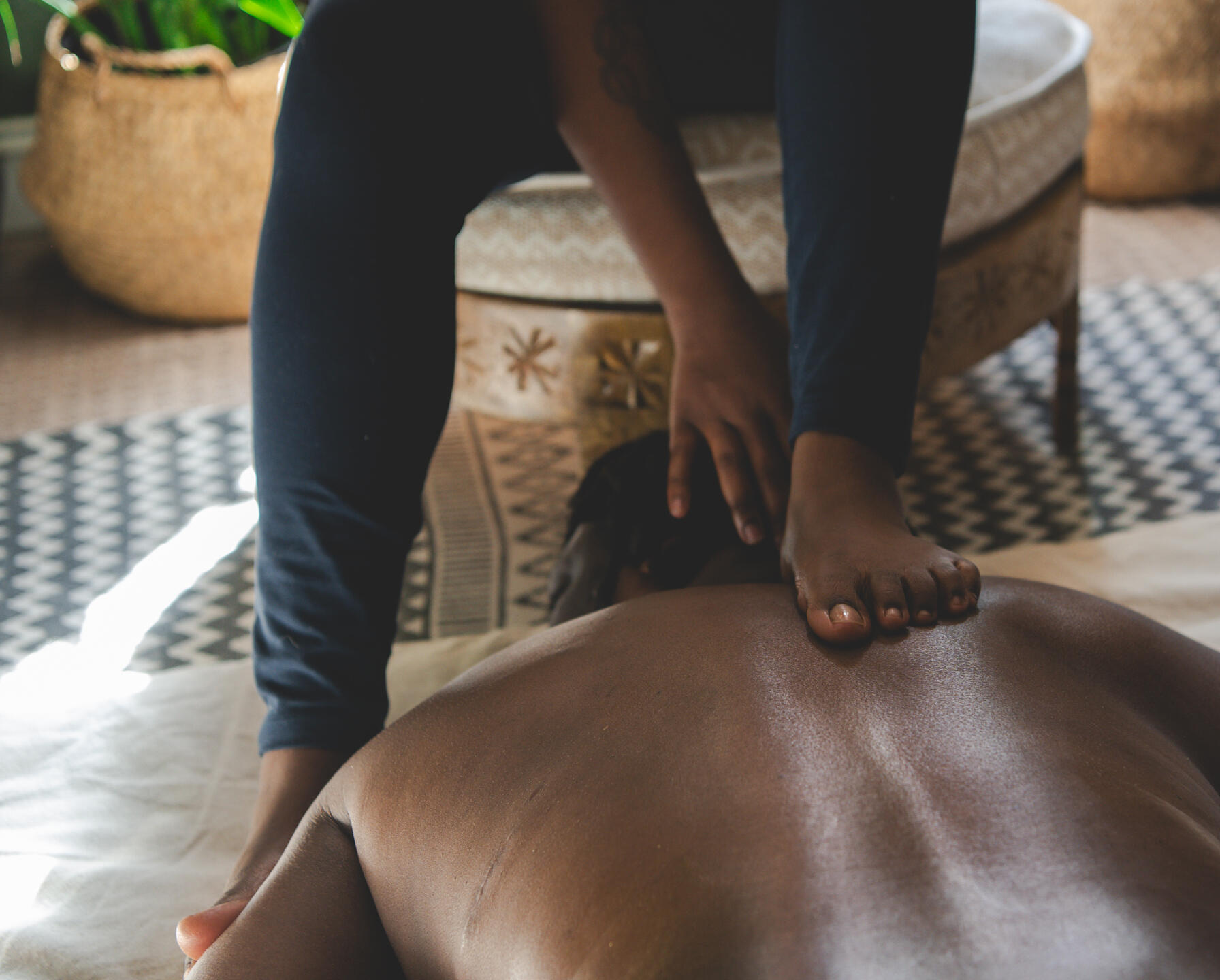 Students participate in curated weekend and short-term trainings across the U.S. with BIPOC instructors who specialize in barefoot and hands-free modalities such as Thai and Ashiatsu massage.Capstone (Month 12)